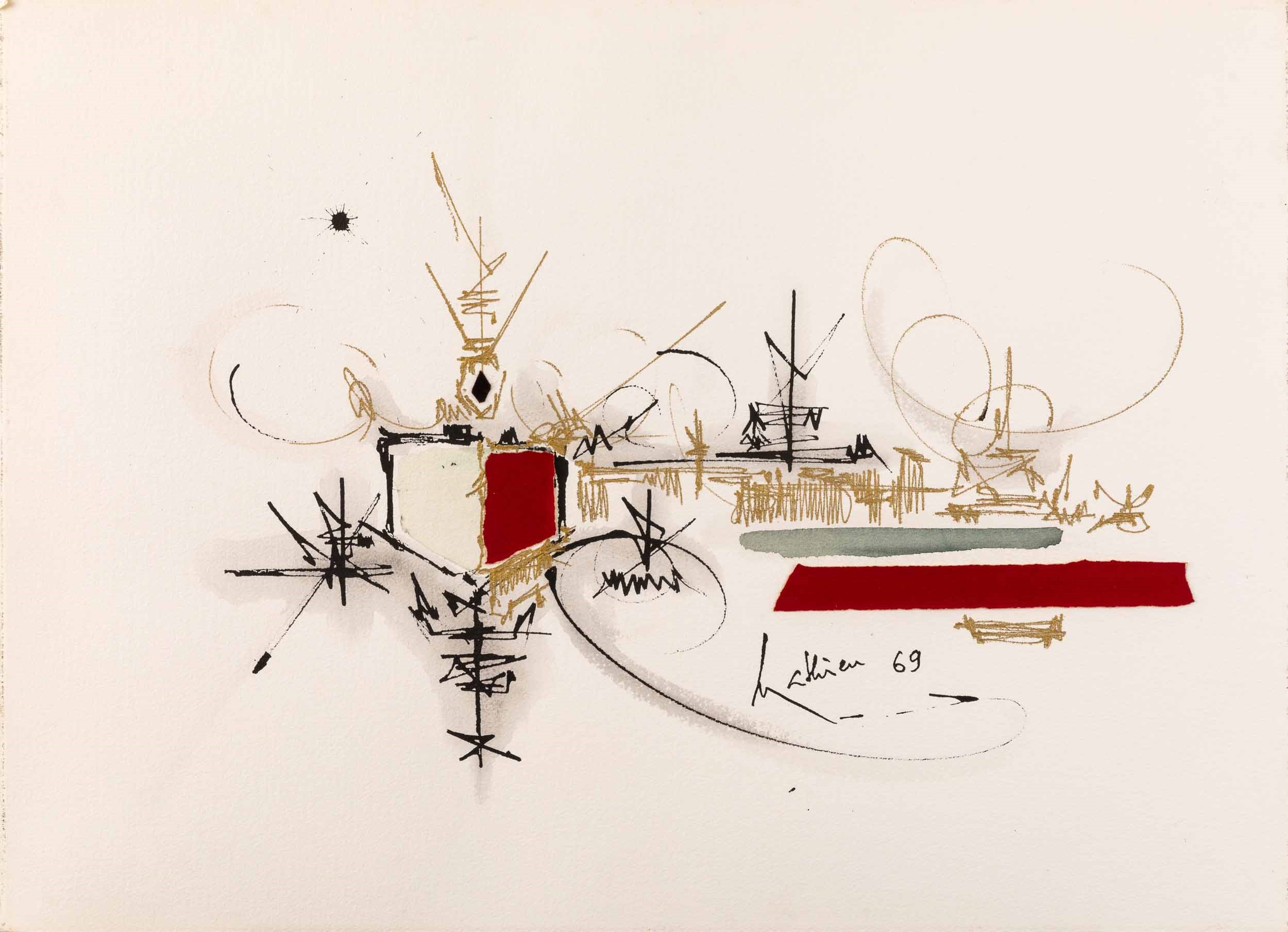 gouache, collage e tecnica mista su carta, Largh. 76 - Alt. 55 Cm