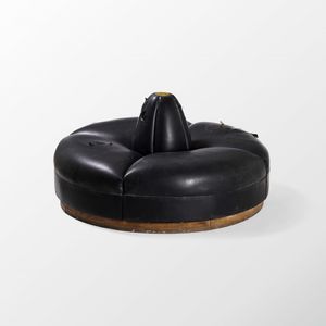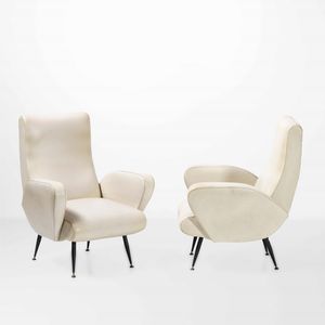 Tavolo con due panche. Piano in legno con sostegni in ottone e metallo laccato. Prod. Italia, 1950 ca. Tavolo: [..]