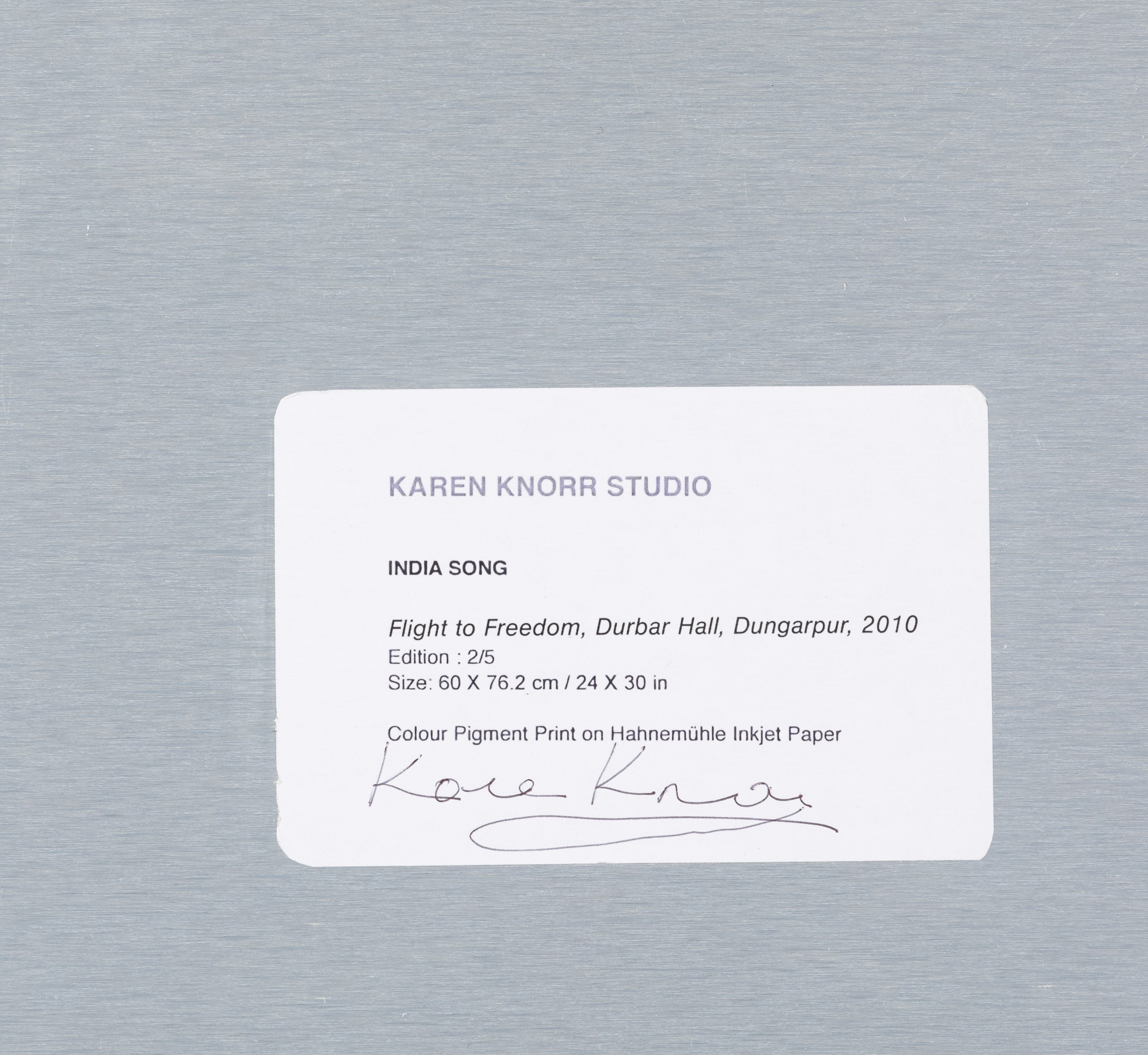 C-print su carta fotografica hahnemühle, Largh. 76,2 - Alt. 60 Cm 2010 Edizione 2 di 5 Etichetta del Karen Knorr Studio titolata, numerata, datata e firmata a penna dal fotografo al retro Opera in cornice