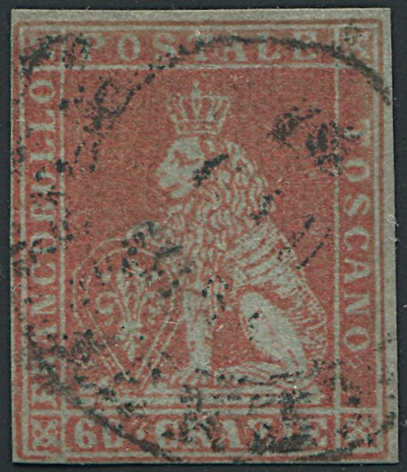 1852, Toscana, 60 crazie scarlatto su grigio (S.9a)