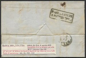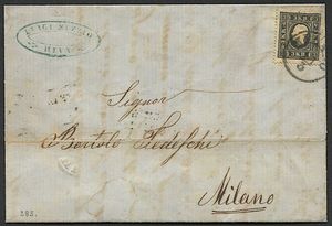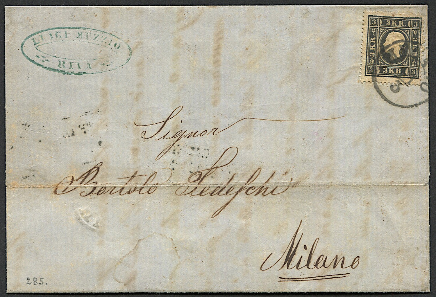 1859, Austria, 3 kreuzer nero I tipo (S. 7) su lettera.