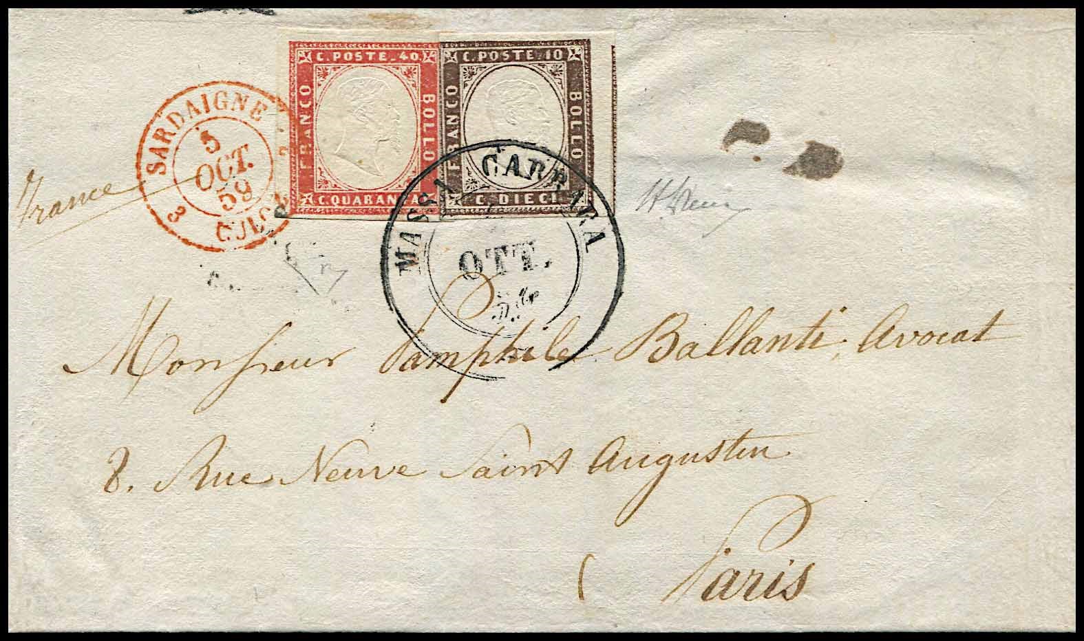 1859, Modena, lettera da Massa Carrara per Parigi del 2 ottobre 1859