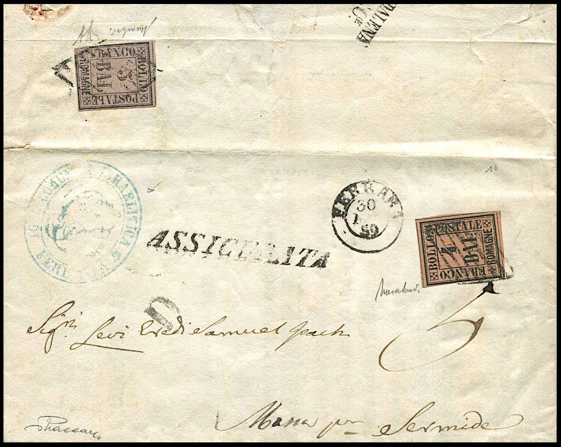 1859, Romagne, raccomandata da Ferrara per Sermide (Oltrepò) via Massa del 30 dicembre [..]