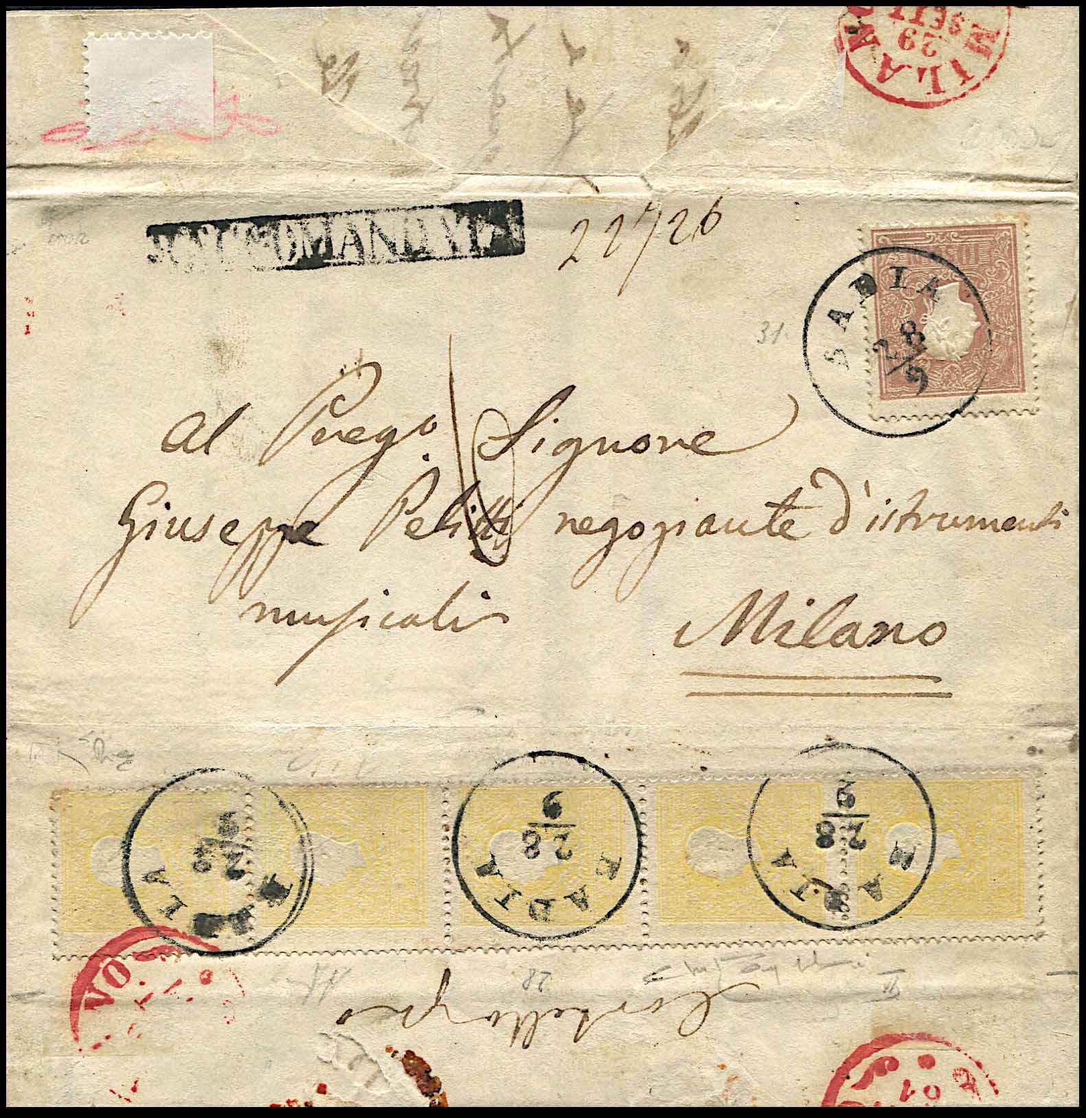 1861, Lombardo Veneto, raccomandata da Badia per Milano del 28 settembre 1861