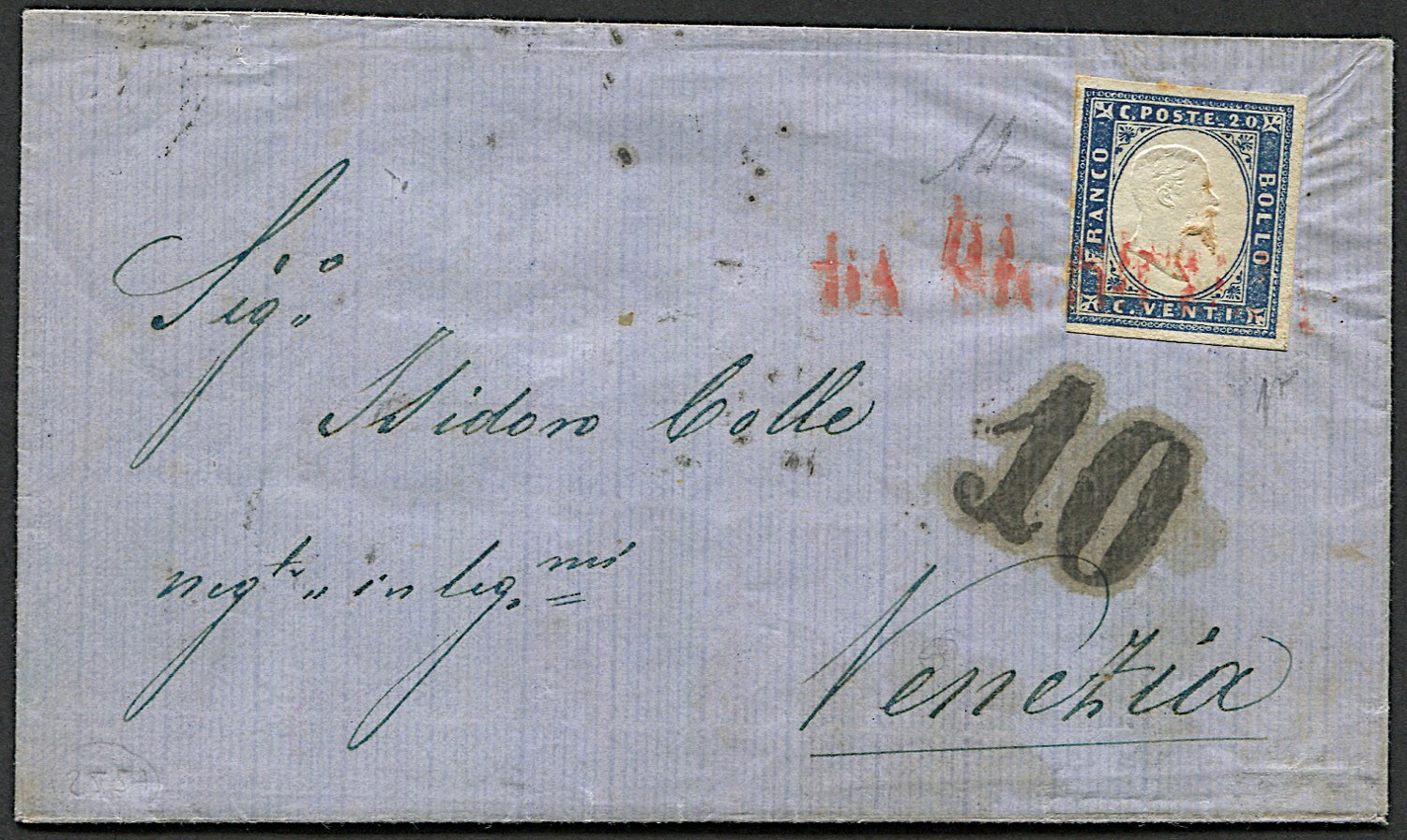 1861, Sardegna, lettera da Palermo per Venezia del 10 settembre 1861