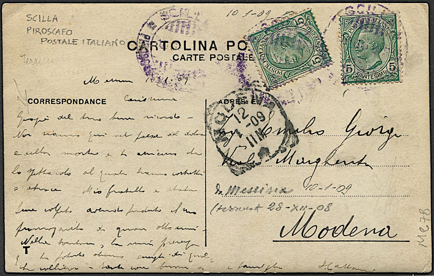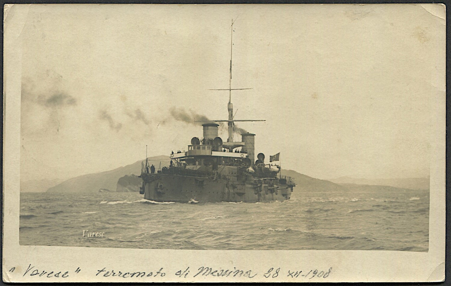 1909, cartolina fotografica che illustra la R.N. “Varese”, scritta da Messina il [..]