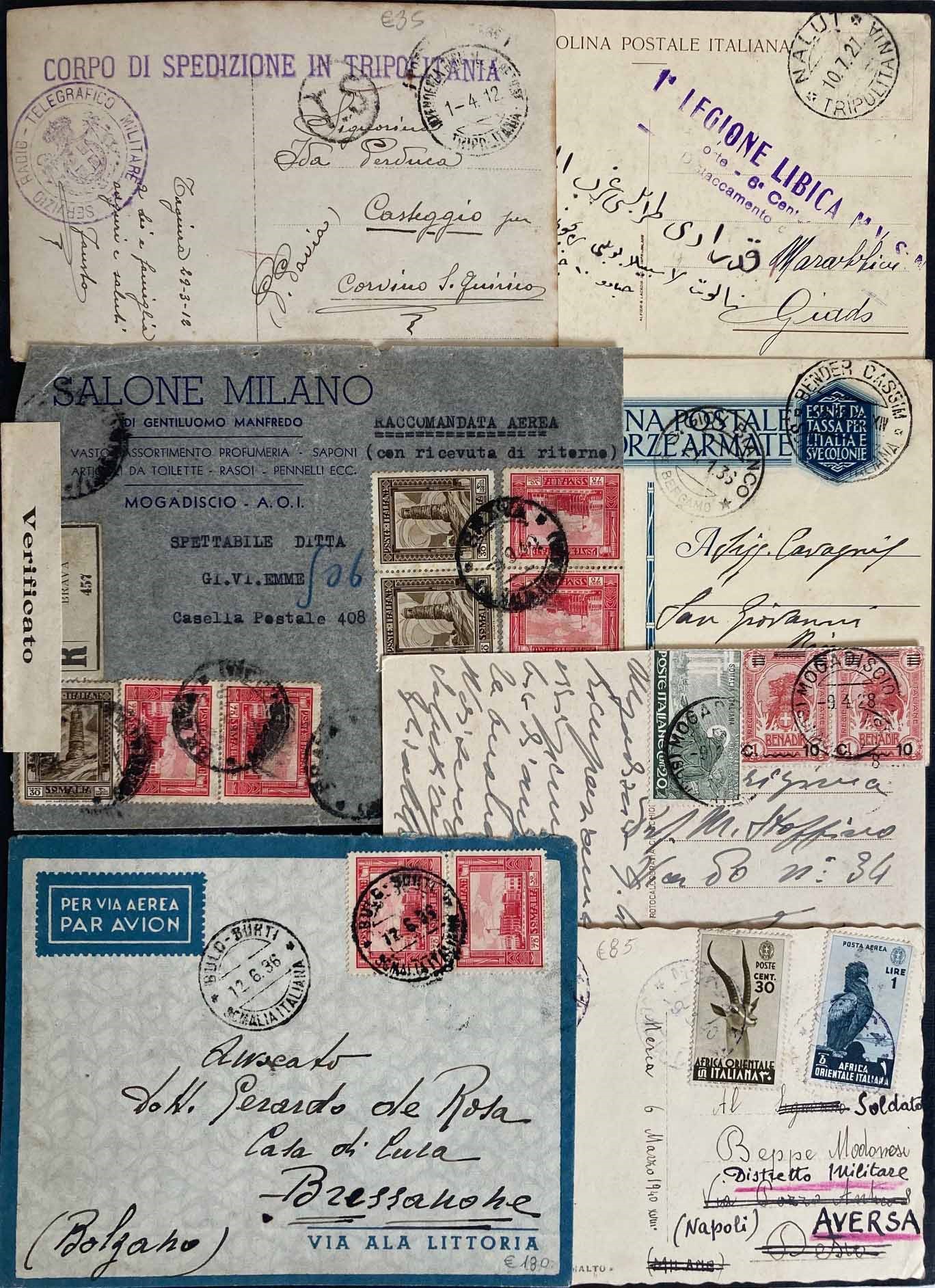 1911/1942, Colonie Italiane, raccolta di 135 buste o lettere, 102 cartoline, 3 telegrammi, [..]