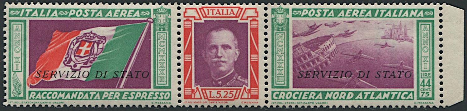 1933, Regno d'Italia, Servizio Aereo, Trittico sovrastampato Servizio di Stato (S. [..]
