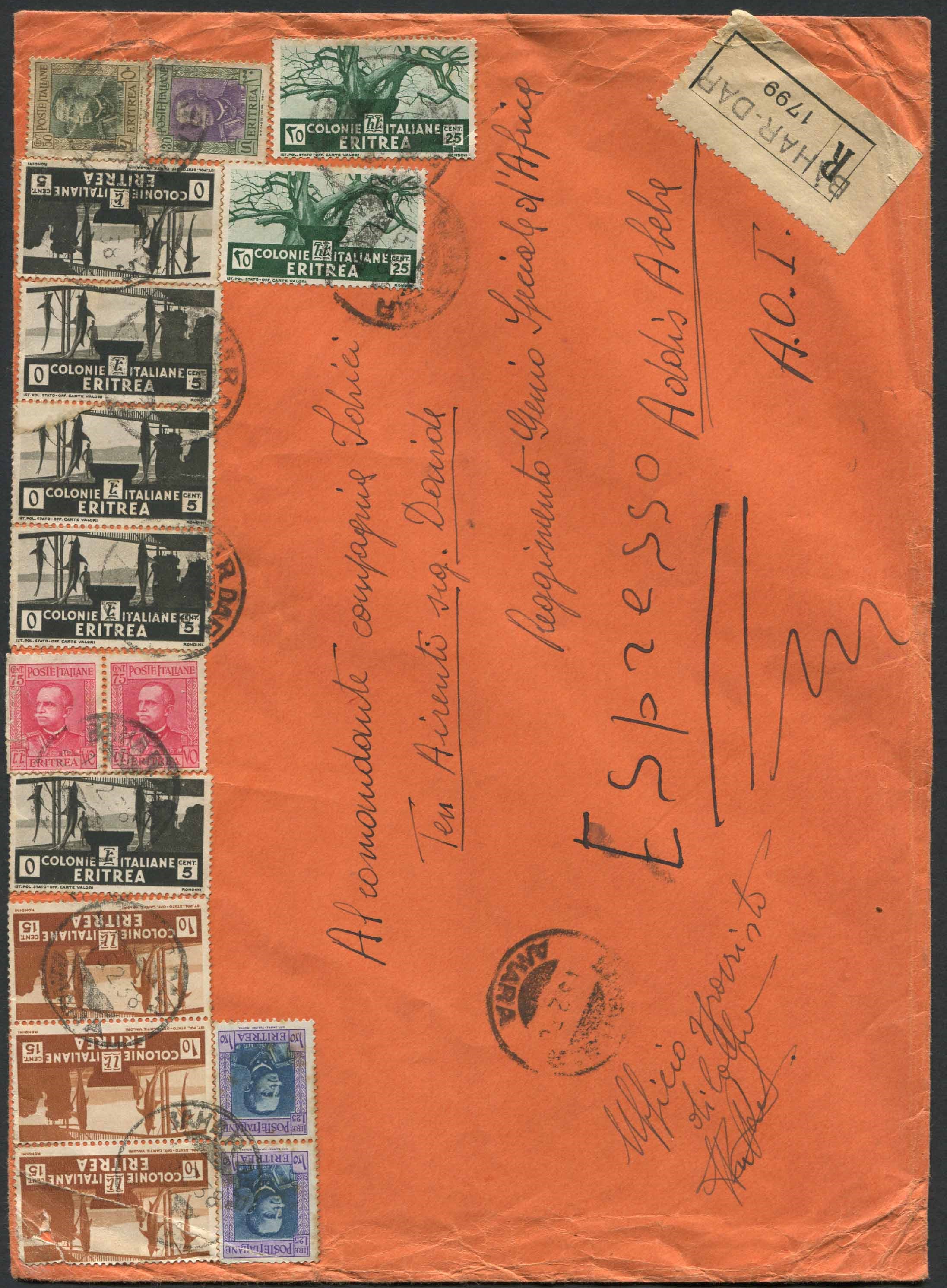 1938, Bahar-Dar (Amara), grande busta raccomandata - espresso per Addis Abeba.
