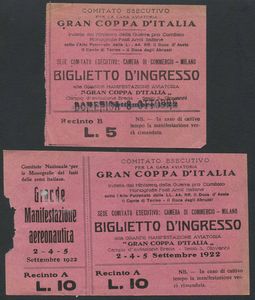 1922, Milano, Gran Coppa d'Italia per aeroplani, due biglietti d'ingresso