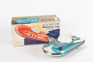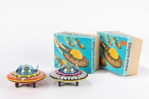 Anni '70 2 varianti di dischi spazialiIn latta con funzionamento a frizione, entrambi in scatola Prodotto in [..]