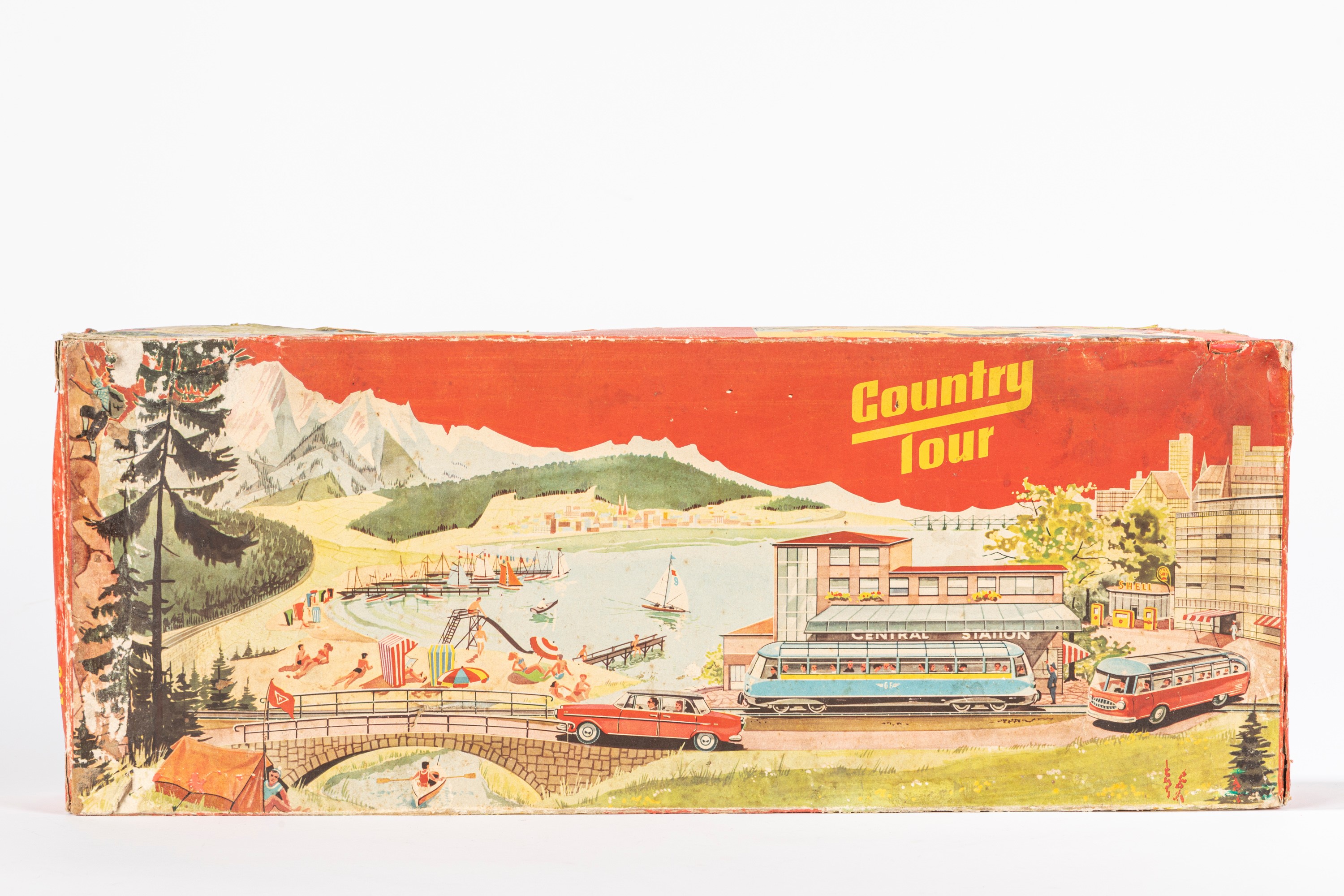 1961 In latta con funzionamento a molla, con 3 auto, con scatola