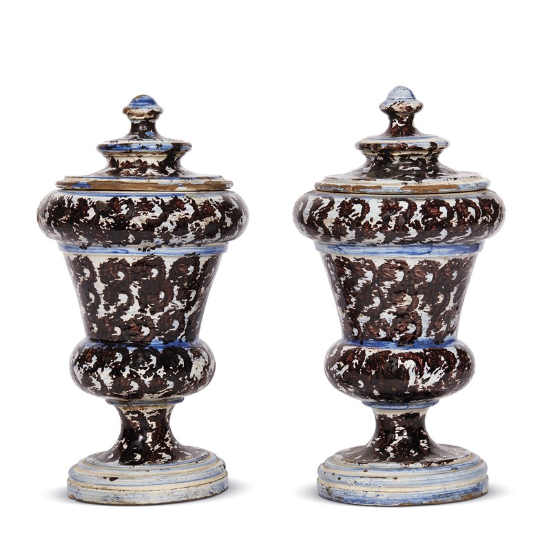 COPPIA DI VASI CON COPERCHIO, ITALIA CENTRALE, INIZI SECOLO XVIII