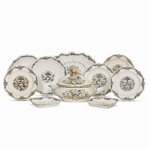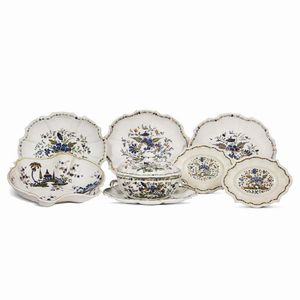 ASSORTIMENTO DI SERVIZIO DA TAVOLA, NOVE, MANIFATTURA PASQUALE ANTONIBON, 1740-1770 CIRCA in maiolica dipinta [..]