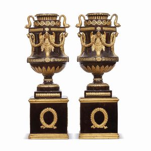 COPPIA DI VASI DECORATIVI, ESTE, MANIFATTURA FRANCHINI, FINE SECOLO XVIII in terraglia marrone con decori a rilievo [..]