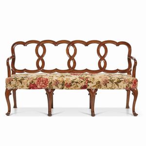 COPPIA DI DIVANETTI, VENEZIA, METÀ SECOLO XVIII schienale lavorato a giorno con cartelle verticali lavorate [..]
