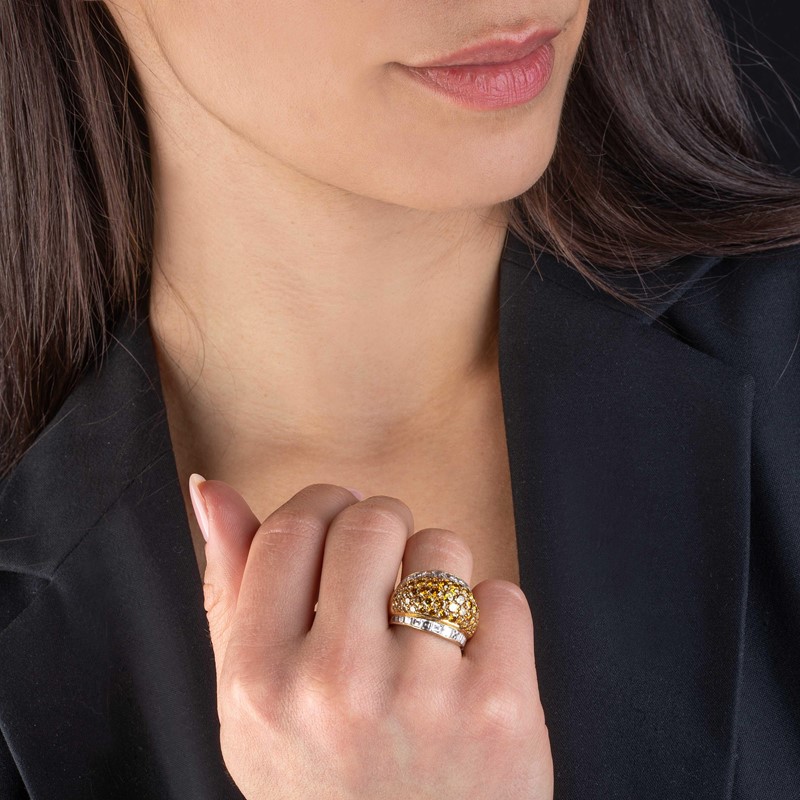 DIAMOND DOME-SHAPED RING IN 18KT YELLOW GOLD