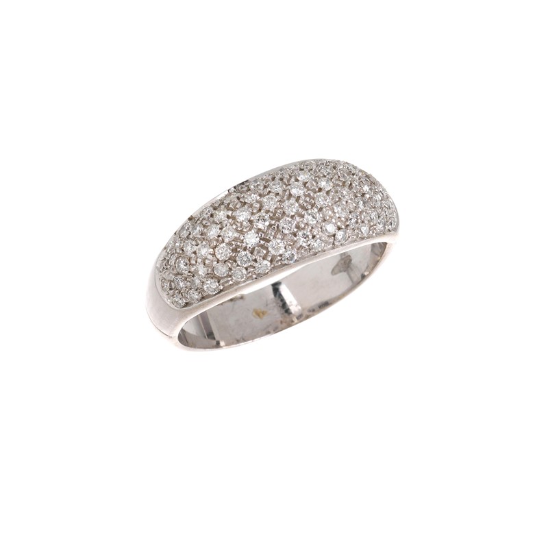 in oro bianco 18kt, impreziosito da pavé di diamanti taglio brillante per ct 0.70 circa, punzone 750, mis. 58, gr. 5