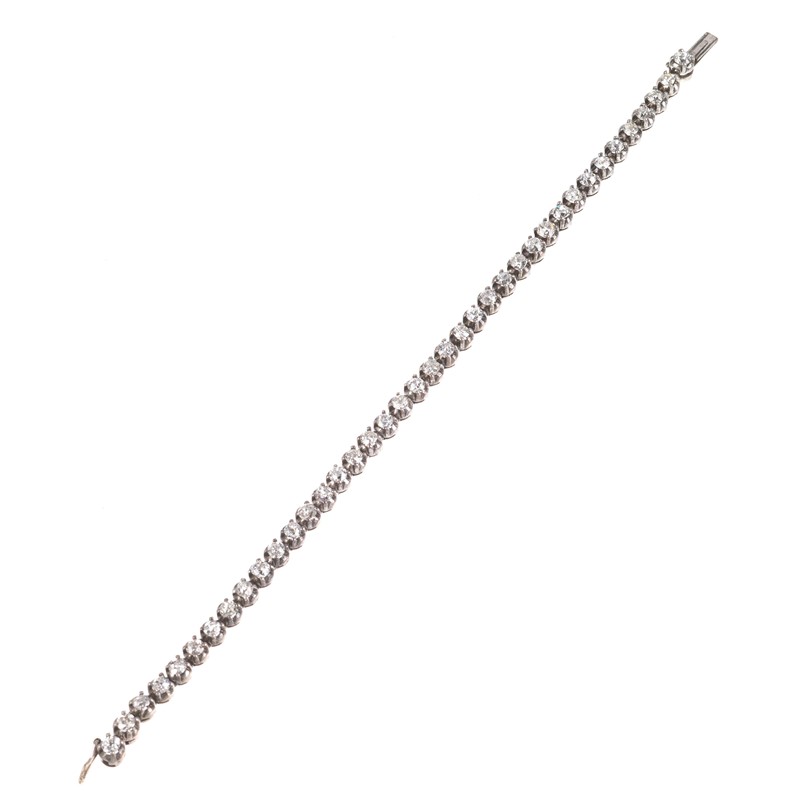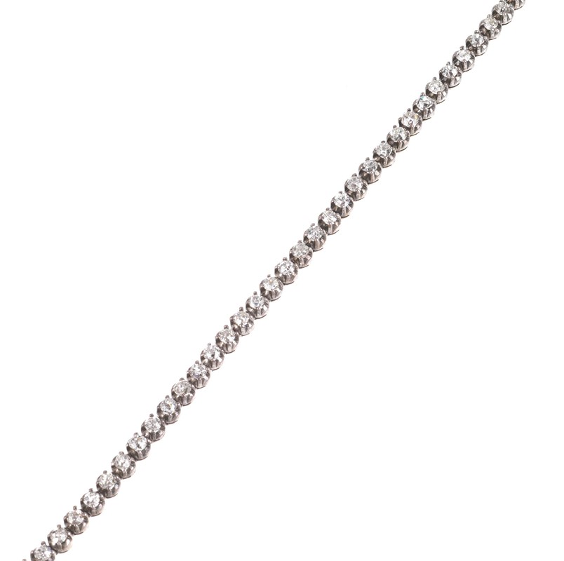 in platino, impreziosito da una fila di diamanti taglio vecchio per ct 5 circa, lungh. cm 19, gr. 31
