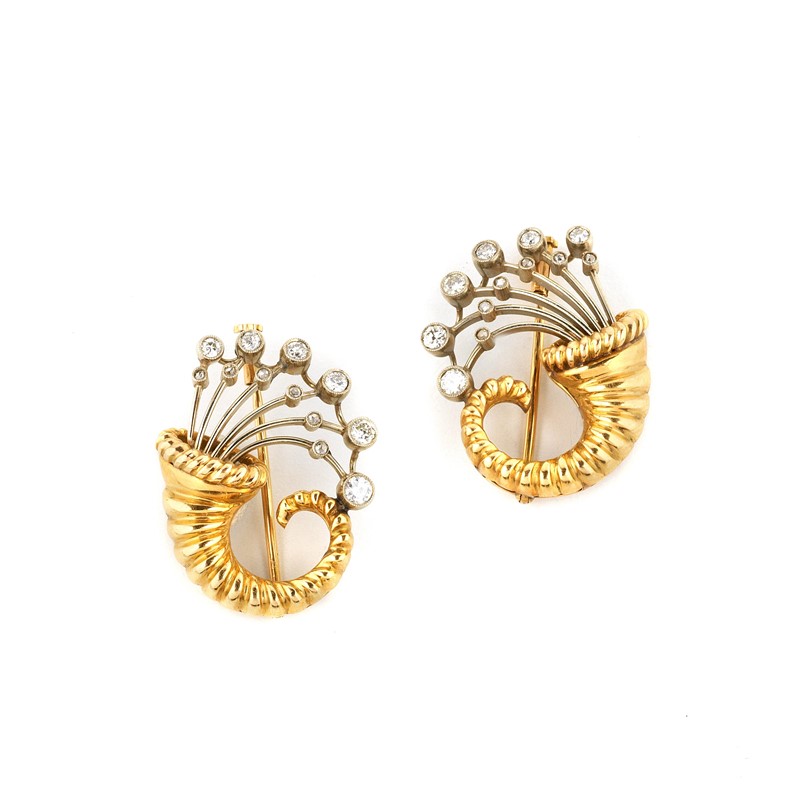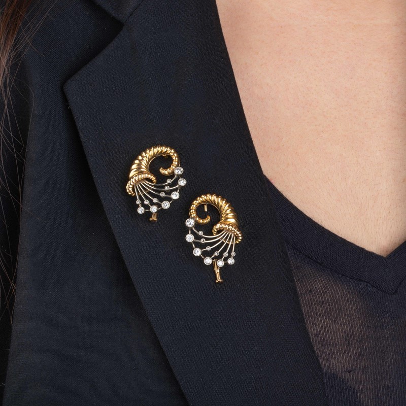 COPPIA DI SPILLE CORNUCOPIA CON DIAMANTI