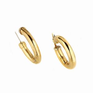 PAIO DI ORECCHINI A CERCHIO in oro giallo e bianco 18kt (difetti), punzoni 750 e del fabbricante, dim. cm 0,5x3 [..]