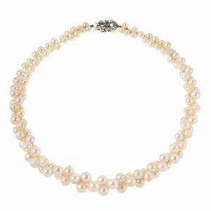 COLLANA DI PERLE composta da un doppio filo di perle digradanti di mm 8-3 circa, fermatura di forma floreale [..]