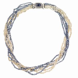 GIROCOLLO TORCHON CON PERLE composto da sette fili di perle d'acqua dolce grigie e bianche, fermatura a forma [..]