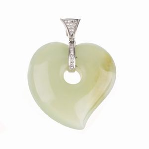 GRANDE PENDENTE A FORMA DI CUORE IN GIADA passante in oro bianco 18kt, impreziosito da diamanti taglio brillante [..]