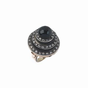 ANELLO A CUPOLA CON ONICE E DIAMANTI in oro e argento, realizzato a più strati sovrapposti con dischi in [..]