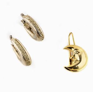 PAIO DI ORECCHINI A CERCHIO CON UN ORECCHINO A FORMA DI SEMILUNA