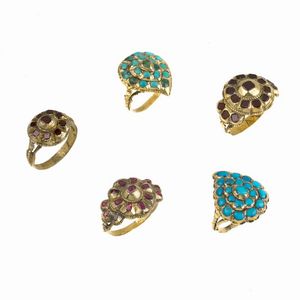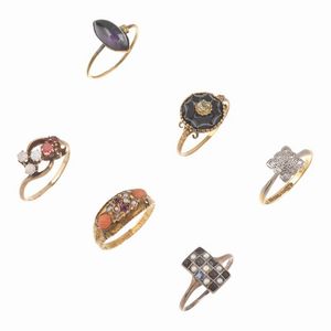 LOTTO COMPOSTO DA SEI ANELLI di cui cinque in oro a basso titolo e argento ed un anello in oro giallo 18kt e platino, [..]