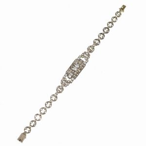 BRACCIALE CON DIAMANTI in oro bianco 14kt, impreziosito da diamanti taglio vecchio per ct 1.40 cica, lungh. cm [..]