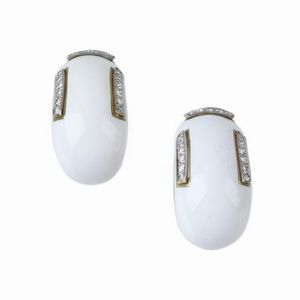 PAIO DI ORECCHINI CON DIAMANTI in oro giallo e bianco 18kt, rivestiti in smalto bianco e impreziositi da diamanti [..]