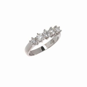 ANELLO RIVIERA in oro bianco 18kt, impreziosito da cinque diamanti taglio brillante per ct 0.80 circa, punzoni [..]