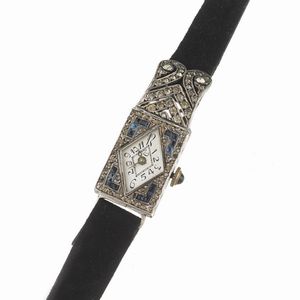 OROLOGIO DA DONNA cassa in platino impreziosita da pietre incolore e zaffiri taglio fantasia, quadrante bianco [..]