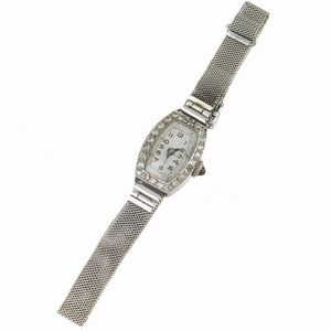 OROLOGIO DA POLSO cassa in platino, quadrante bianco, numeri arabi, ghiera impreziosita da diamanti taglio huit [..]