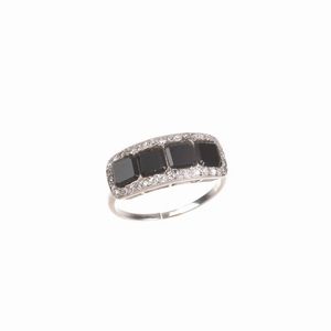 ANELLO CON ONICE E DIAMANTI in oro bianco 18kt, impreziosito al centro da quattro pietre in onice taglio ottagonale [..]