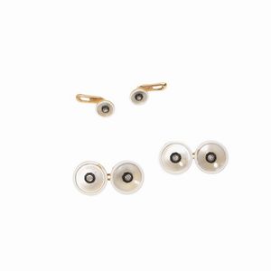 SET DA SPARATO CON MADREPERLA ONICE E DIAMANTI in oro giallo 18kt, composto da due gemelli e due bottoni a dischi [..]