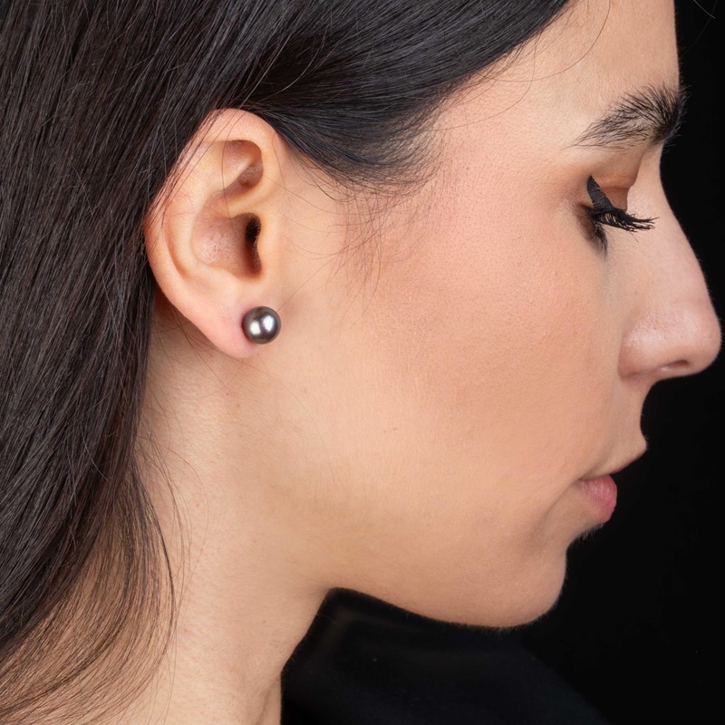 GREY PEARL STUD EARRINGS IN 18KT WHITE GOLD