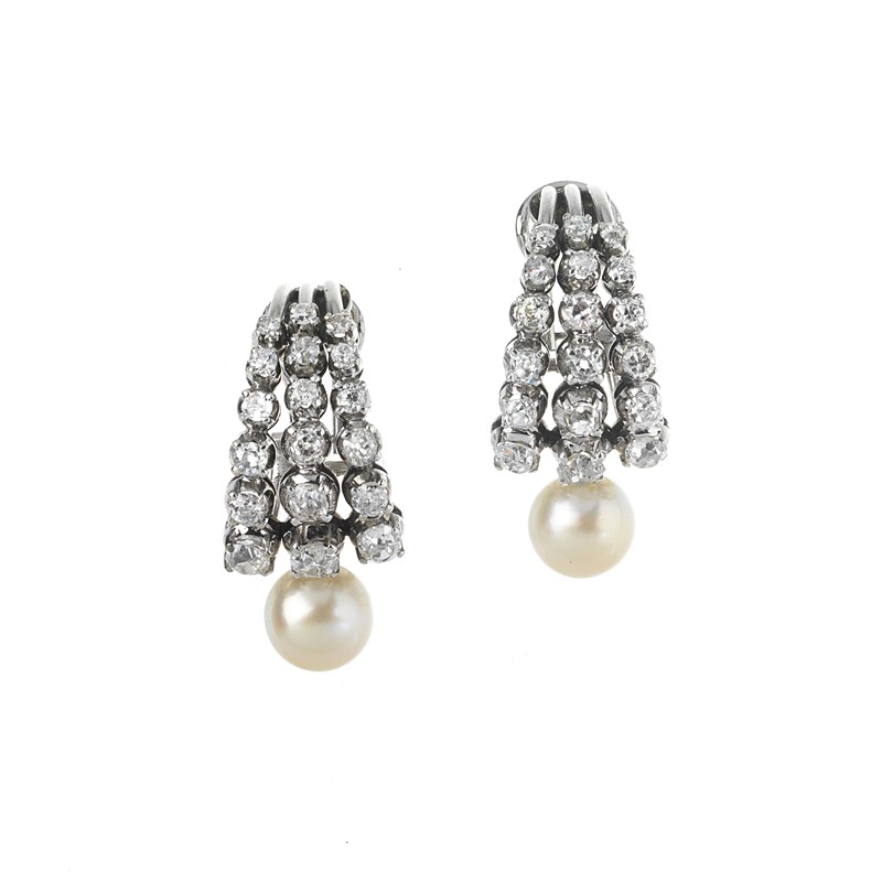 PAIO DI ORECCHINI CON PERLE E DIAMANTI