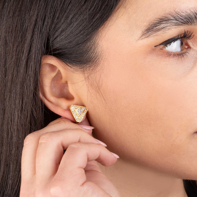 GEOMETRIC DIAMOND STUD EARRINGS IN 18KT YELLOW GOLD