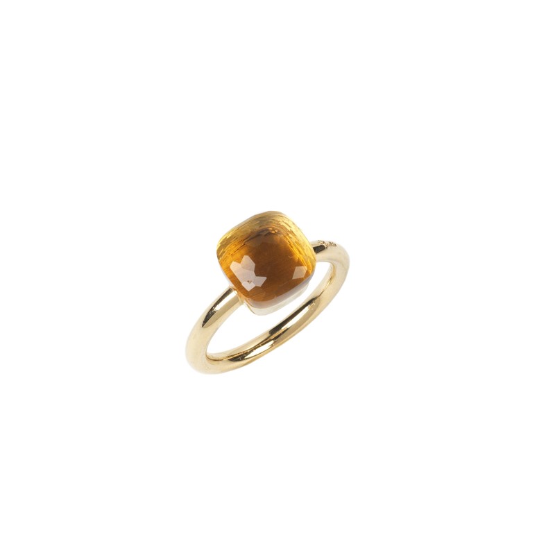 in oro giallo 18kt, impreziosito sulla sommità da un quarzo citrino sfaccettato, firmato "Pomellato", punzoni 750 e del fabbricante, mis. 57, gr. 7