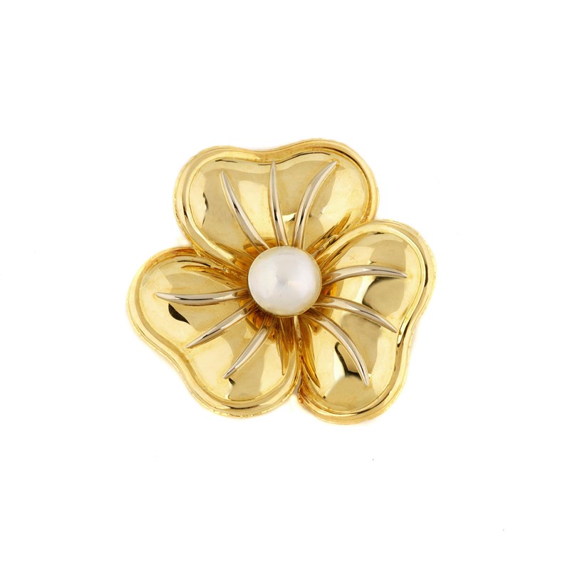 MABE PEARL FLOWER BROOCH IN 18KT TWO TONE GOLD