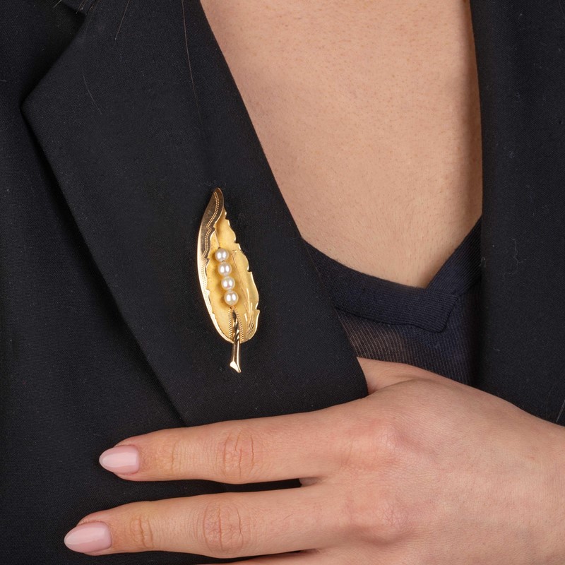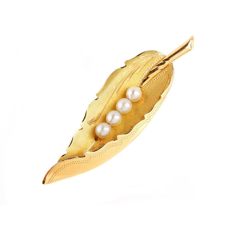 PEARL LEAF SHAPED BROOCH IN 18KT YELLOW GOLD