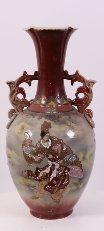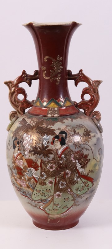 Coppia di vasi biansati in porcellana policroma