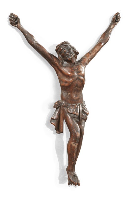 Scultura in legno montata su specchio, cm. 21x14 (crocifisso)