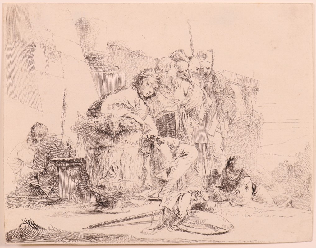 Incisione all'acquaforte, mm. 142x178 (rifilata al margine dell'impronta)
