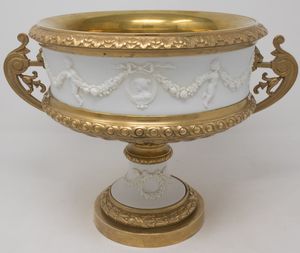 Coppa in bronzo dorato e bisquit