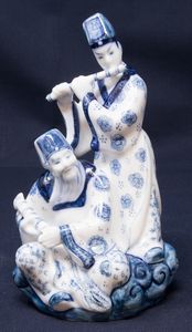 Scultura in porcellana bianco blu