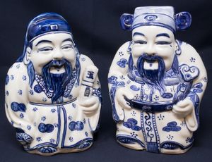 Coppia di sculture in porcellana bianco blu